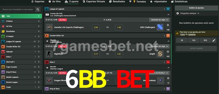 A aposta 6BB Bet oferece aos jogadores a experiência mais conveniente de apostas em eSports!